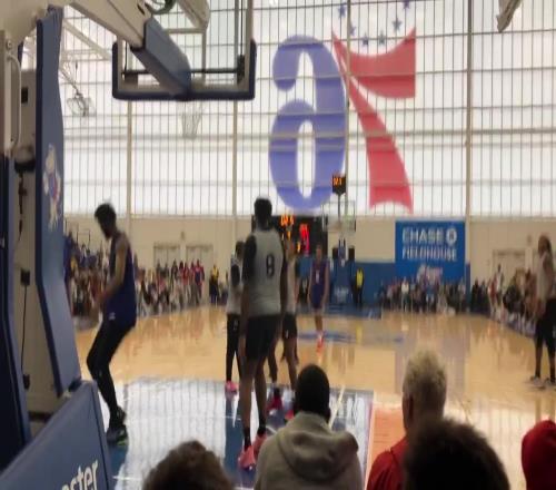 恩比德在队内训练赛完成暴扣时隔8月首次在公开场合亮相!